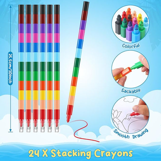 24 Pieces Dinosaur Mini Coloring Books Party Favors with 24 Stacking Crayons