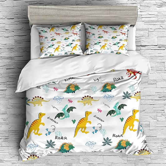 Colorful Dinosaur Bedding Set Full Size Kids Duvet Cover Cartoon Jurassic Animal Cute Dinosaur Decor Comforter Cover 3 Pieces with 2 Pillowcases