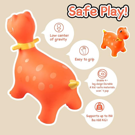 Bouncy Hopper, Inflatable Dinosaur Toys for Kids - Pump Included (Orange)