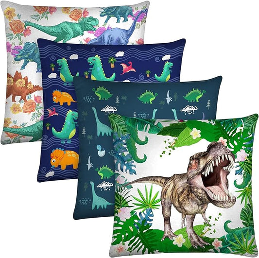 Dinosaur Pillow Covers 18x18in Set of 4 Dinosaur Throw Pillows Soft Square Couch Pillow Decorative Covers (18 x18inch, Dinosaur-1)