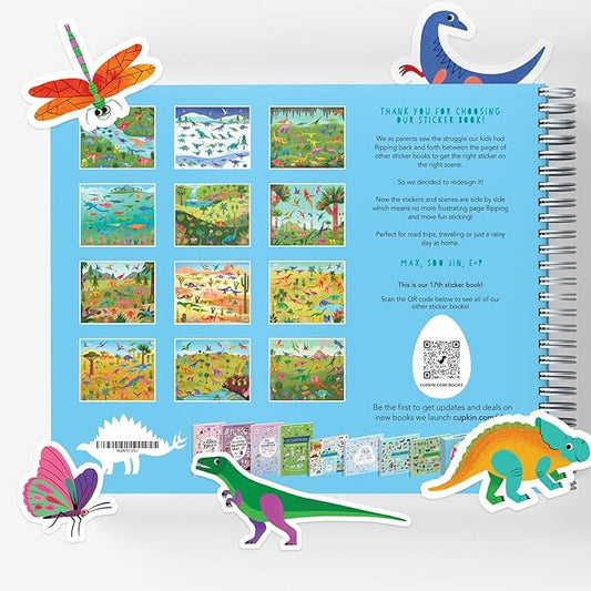 Dinosaur Book for Kids 3-5: Side by Side Dinosaur Books for Kids 3-5 with 500+ Dinosaur Stickers with +12 Scenes - Spiral Binding Keeps The Dinosaur Sticker Book