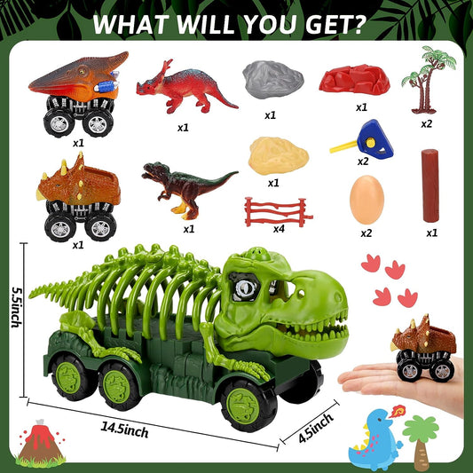 13 in 1 Dinosaur Truck for Kids, with 12 Pull Back Dinosaur Car Vehicles and Helicopter.
