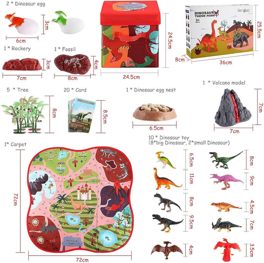 Dinosaur Figures with Play Mat & Trees, 2 in 1 Storage Box