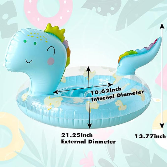 Dinosaur Swimming Ring Floats, Inflatable Dinosaur Child Pool Float with Safety Seat, Water Swim Ring Ride On Party Toys