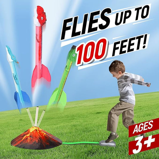 Neoot Toys for Boys Age 3-12, Dinosaurs Toys for Kids, Rocket Launcher - Outdoor Toys, Launch up to 100 ft