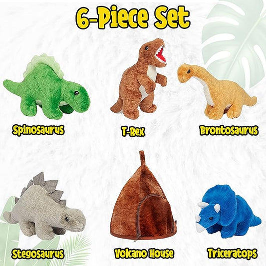 Dinosaur Volcano House with 5 Plush Dinosaurs Great for Kids