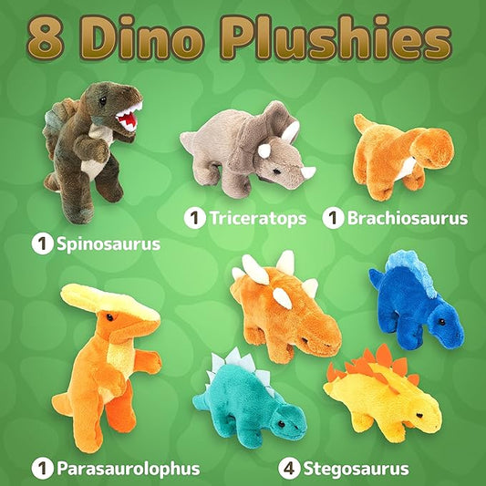 Plush Dinosaurs 8 Pack 5'' Long Great Gift for Kids Stuffed Animal Assortment Great Set for Kids