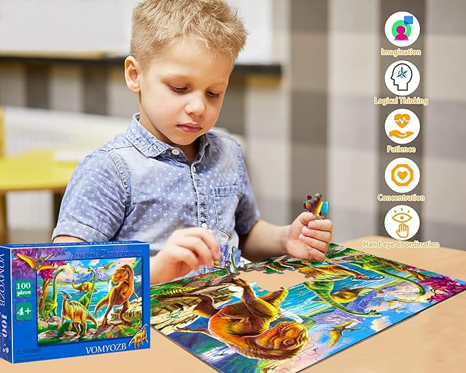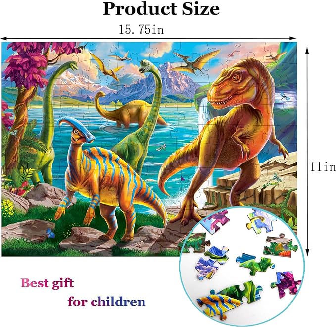 - ❤Puzzles for kids ages 4-8 – Jigsaw Puzzle is a 100 piece dinosaur puzzle easy to assemble . variety of dinosaurs to stimulate the imagination and meet the child's dream of dinosaurs.